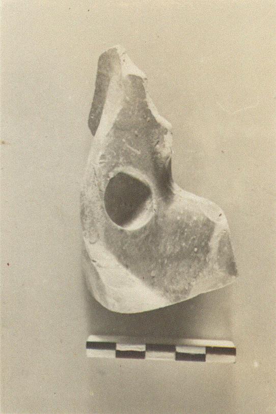 | Description: | Handle, and part of back of body. Flat decorated plaque on top of handle broken off. Thin fabric, red glaze. Type ΧΧΙ of Corinth collection. | |