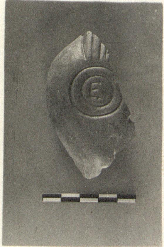 | Description: | Signed within two circles: "E". Purplish wash. Pinkish-buff clay. Type XXVIII of Corinth collection. | |