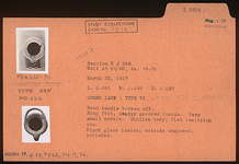 | Description: | Band handle broken off. Ring foot, neatly grooved inside. Very small nozzle. Shallow body; flat insloping rim. Black glaze inside; outside unglazed, polished. Type VI (late 5th. century variety) of Corinth collection, type 23A' of Agora collection. | |