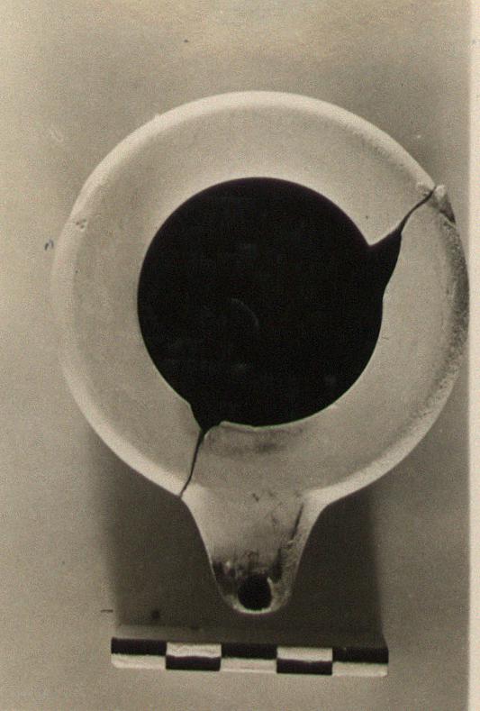 | Description: | Band handle broken off. Ring foot, neatly grooved inside. Very small nozzle. Shallow body; flat insloping rim. Black glaze inside; outside unglazed, polished. Type VI (late 5th. century variety) of Corinth collection, type 23A' of Agora collection. | |