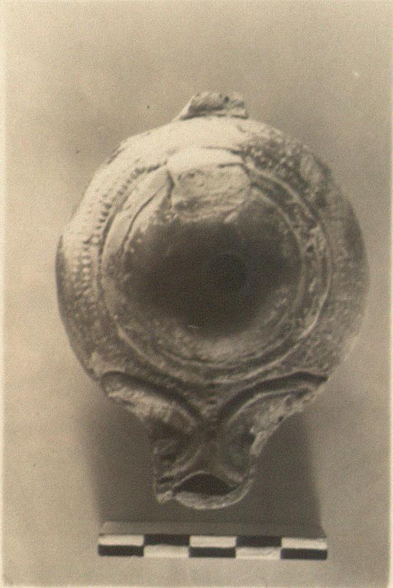 | Description: | Handle and end of nozzle missing. The dots small and elongated; underneath, "alpha". Glaze wash red to black. Type XX of Corinth collection. | |