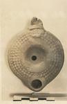 | Description: | Double loop handle missing. Shoulder covered with low raised dots. Nozzle set deep in body. Micaceous brown clay. Forerunner of type XXVIII (?) of Corinth collection. | |