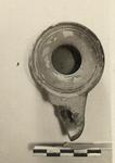 | Description: | Part of nozzle broken away. Underside flat; top flat with two shallow rills around outer edge. Brown glaze, much peeled. Type VI (Inkwell variety) of Corinth collection, typer 23D of Agora collection. | |