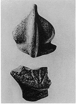 | Description: | Fragment a), large flat leaf-handle . Fragment b), part of the flat base and side wall. Underneath, incised beneath the glaze. Dull glaze, red to brownish and somewhat peeled. Type XXI of Corinth collection. <graphic> | |