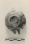 | Description: | Only lower half of body preserved; nozzle broken away. Typical globules on the wall; on the bottom, in relief, "alpha". Thin black glaze wash, unevenly applied. Light red clay. Type XX of Corinth collection. | |