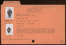 | References: | Publication: Agora VII Publication Page: Agora 7, s. 226, p. 210 Publication Page: Agora 7, s. 236, p. 220 Image: 2012.81.0382 (95-15-9) Deposit: O-Q 18-19 Lot: Ω 191 Notebook: Ω-4 Notebook: Ω-8 Notebook Page: Ω-4-66 (pp. 721-722) Notebook Page: Ω-4-68 (pp. 725-726) Notebook Page: Ω-8-23 (pp. 1437-1438) Card: L 3365 Card: L 3365 |