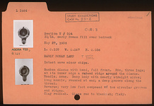 | Description: | Intact save minor chips. Sunken discus with head, full front. On rim, three lugs; at its inner edge a raised ridge around the discus. No handle. Deep body with nearly straight sides; long nozzle, rounded at end; a deep groove along the throat. Reverse, very low foot composed of two circular grooves and ridges. Glaze red to blackish; flaky. Reddish clay. Type XXVI of Corinth collection. | |