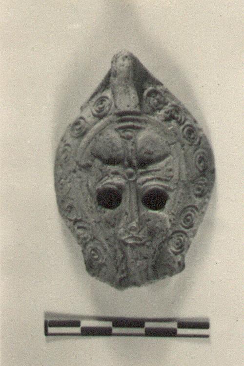 | Description: | The upper part preserved; nozzle missing. Impressed concentric circles on the rim, a cross in the discus. Unglazed. Red clay. Type XXXIII of Corinth collection. | |