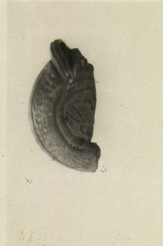 | Description: | Fragment of base, back and side. Upper part of handle and right half of bottom broken away. Lower half of sides decorated with globules. On bottom, within double circular groove, the letters. Handle, double grooved and set off from body by grooves. Unglazed. Pinkish clay; buff at surface. Type XXVIII of Corinth collection. <graphic> | |