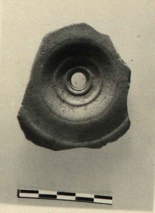 | Description: | A single fragment, broken all around, preserves discus and part of rim, both decorated with concentric circles in low relief. Unglazed. Soft light buff clay. Type XXVII (?) of Corinth collection. | |