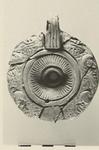| Description: | Mended from many pieces; nozzle and wall fragments missing. Radiating grooves on sharply concave discus; grapes and vine-leaves on rim; flat base outlined by groove. Handle grooved and pierced; at its base an "X" between transverse grooves-not a letter. Brownish-buff clay; light buff surface. Type XXVII of Corinth collection. | |