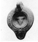 On discus, boukranion; on rim, raised dots; handle unpierced, triply grooved on top, doubly grooved on bottom. On reverse, concentric ridges.