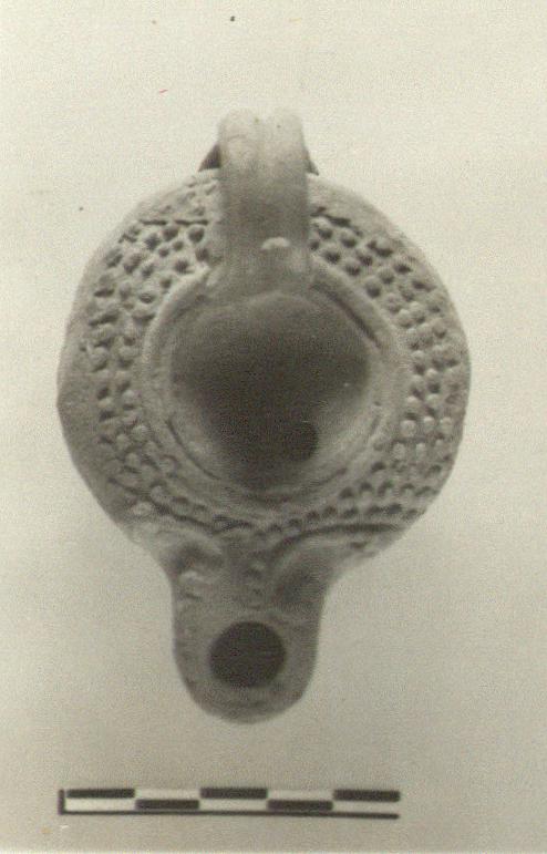 | Description: | Intact, but fire-blackened. Typical globules on body and top; typical "alpha" on reverse. Purplish slightly metallic glaze. Type XX of Corinth collection. | |