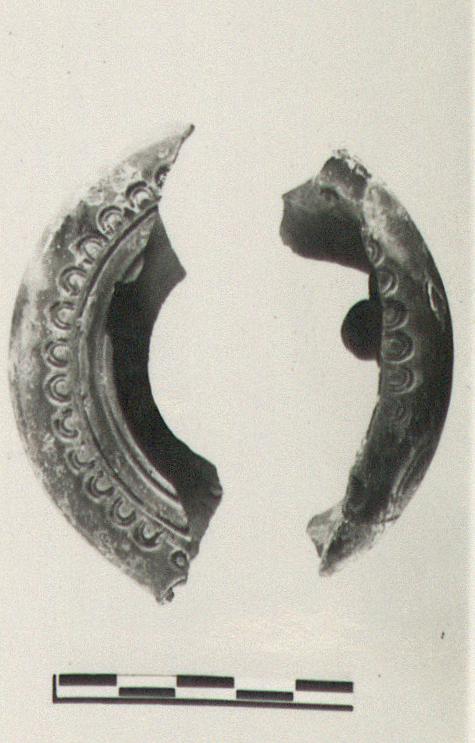 | Description: | Four fragments, making up to two, preserve some of rim and body. Impressed ovules on rim. Orange-red glaze on white. Micaceous brownish clay. Type XXIV or XXV (?) of Corinth collection. | |