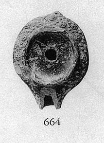 | Description: | Handle and end of nozzle broken off; ridge chipped. On upper body, dotted rosettes and wavy line of dots; high raised ridge around flat rim. Low flat base. Black glaze. Signed underneath, the letters in relief: "ΠΑΡΑΜΟΝΟ(Υ)". Gray clay. Type XIX of Corinth collection, type 49A of Agora collection. Cf. L 2933. | |