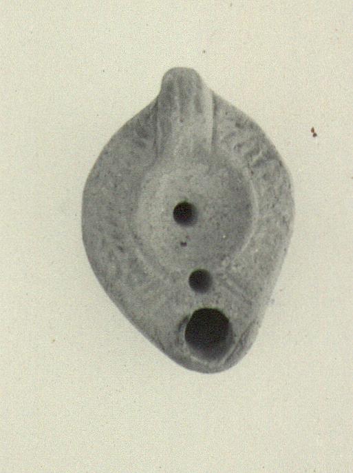 Nozzle, set off by double grooves. Rounded. Air hole behind wick hole.