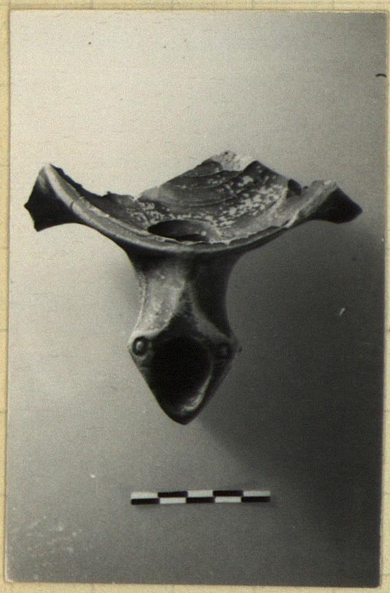 Description:   One nozzle, parts of two others, and bit of bottom preserved in four joining pieces.