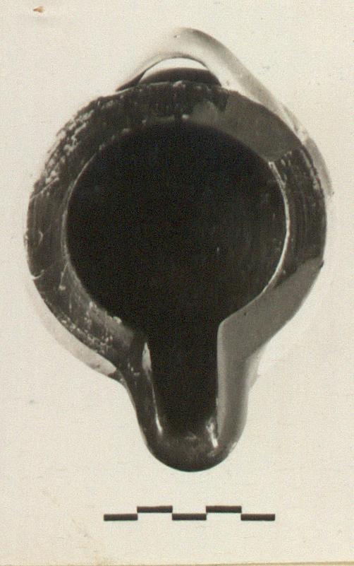 | Description: | Handle, and part of nozzle, rim and wall, restored. Lamp with unbridged nozzle. Angular profile, the body broad below; flat bottom; flat projecting rim; attachment for band handle preserved; broad nozzle. Glazed inside and on rim of nozzle. Pinkish-buff clay. Type 6B of Agora collection; group E. | |