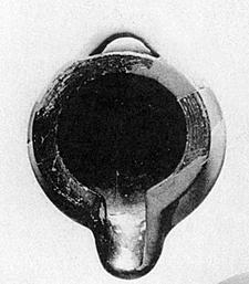 | Description: | Handle, and part of nozzle, rim and wall, restored. Lamp with unbridged nozzle. Angular profile, the body broad below; flat bottom; flat projecting rim; attachment for band handle preserved; broad nozzle. Glazed inside and on rim of nozzle. Pinkish-buff clay. Type 6B of Agora collection; group E. | |
