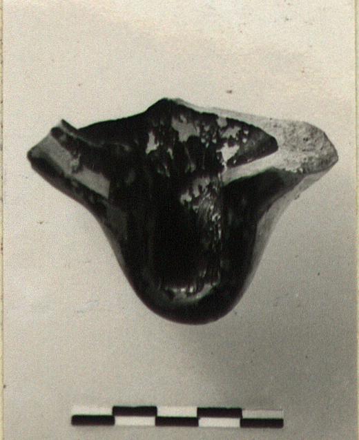 Black glaze inside and on rim, with a reserved band around outer edge of rim.