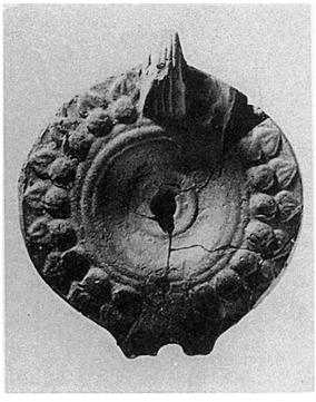 | Description: | Mended from many pieces; the end of the nozzle, and small fragments, missing. Plain discus with ridges around filling hole and outer edge; on the rim, ring of rosettes and ivy-leaves. Pierced handle; reverse, low base ring. Unglazed. Light red clay with pale buff surface. Type XXVII of Corinth collection. | |