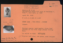| References: | Publication: Agora IV Publication: AgoraPicBk 9 (1963) Publication Page: Agora 4, s. 207, p. 197 Publication Page: Agora 4, s. 241, p. 231 Image: 2012.56.1023 (83-304) Notebook: ΠΠ-4 Notebook: ΠΠ-8 Notebook Page: ΠΠ-4-60 (pp. 710-711) Notebook Page: ΠΠ-8-26 (pp. 1442-1443) Card: L 4487 |