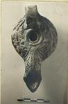 | Description: | Intact. Pointed nozzle; band handle; olive leaf pattern on rim with ridge around filling hole. In relief on base: "ΗΡΑΔΟC". Red glaze, much chipped. Pinkish-buff clay. Type XVIII of Corinth collection, type 54A of Agora collection. | |
