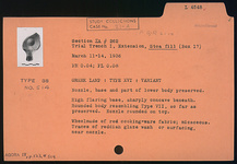 | Description: | Nozzle, base and part of lower body preserved. High flaring base, sharply concave beneath. Rounded body resembling type VII, so far as preserved. Nozzle rounded on top. Traces of reddish glaze wash or surfacing, near nozzle. Wheelmade of red cooking-ware fabric; micaceous. Type XVI Variant of Corinth collection, type 38 of Agora collection. | |