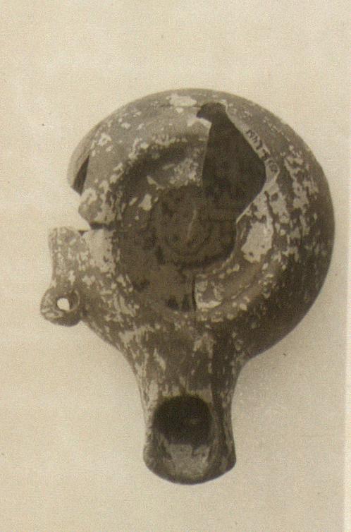 | Description: | Two small pieces missing, from rim and from body. Wheel made. Double convex body. Depressed top. Short nozzle, slightly turned up at fluked ends. Base simulated by a groove round the bottom of the body. Thin metallic black glaze, much chipped. Attic clay. Type XII (early spreading variety) of Corinth collection, type 34A of Agora collection. | |