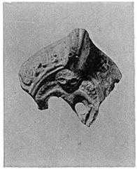 | Description: | About one third of back of lamp preserved. Unpierced handle. Two preserved holes on discus. Head, wings and arms of Eros, facing on discus. On underside, grooves spreading from base of handle. No glaze. Orange-buff clay. Type XXIX of Corinth collection. ADDENDA Sherds from same fill stored in Tin 156. | |