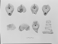 | Description: | Single fragment preserves the lower part of the stem. Hollow, conical stem with flat base; lower part of stem flares out and a trace is preserved of an upwards curving lip. Two ridges around the stem and a trace of the lower attachment of a vertical handle. A few drops of brown glaze on the lip at the base of the stem. Coarse reddish clay with grits. | |