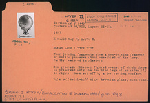 | Description: | Four joining fragments plus a non-joining fragment of nozzle preserve about one third of the lamp. Partly restored in plaster. Rim grooved. Discus, decorated with figured scene, of which there is preserved only the two hind legs of an animal (?) to right. Base set off by a low resting surface. Brownish glaze, much worn. Pale yellowish-buff clay. Type XXII of Corinth collection. | |
