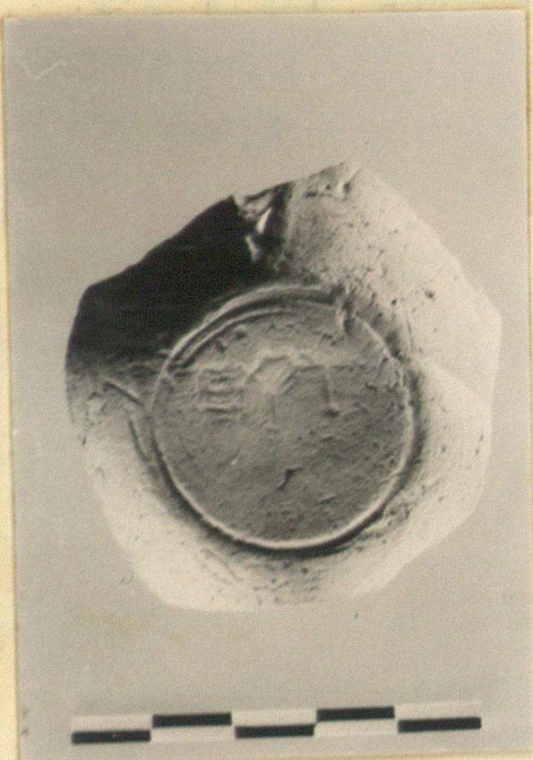 | Description: | Bottom only preserved. Within incised groove, the signature, carelessly made; incised twice (?). Unglazed. Buff clay. Type XXVII of Corinth collection. <graphic> | |