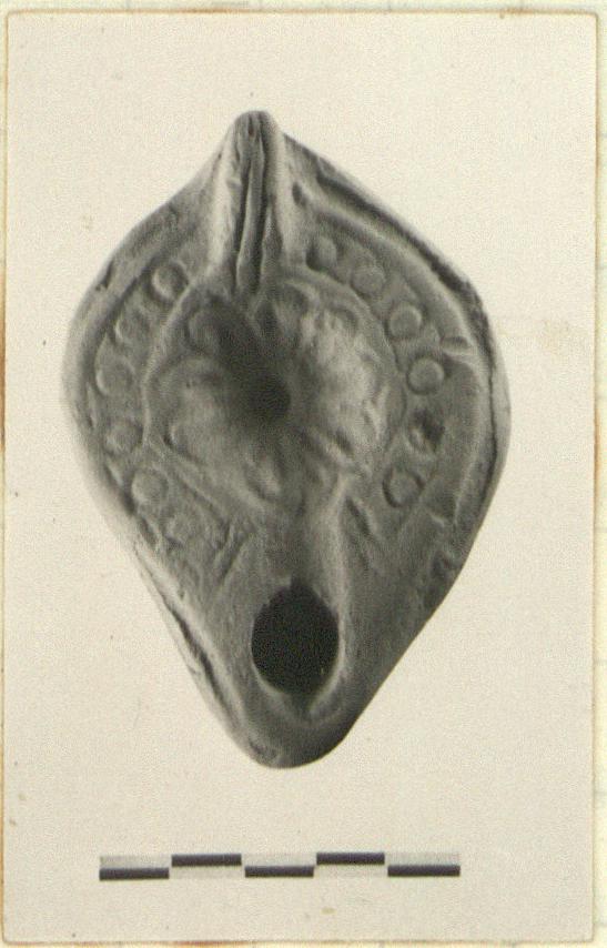 Rosette on discus; circle on rim. Palm leaf on bottom.