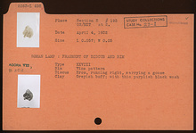 | Description: | Fragment of discus and rim. On rim, vine pattern. On discus, Eros, running right, carrying a goose. Thin purplish-black wash. Grayish-buff clay. Type XXVIII of Corinth collection. | |