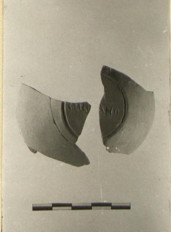 | Description: | Two non-joining fragments from side and bottom. Letters incised. Pale buff clay. Type XXVII of Corinth collection. ADDENDA Sherds in T 57. Cf. Corinth IV, ii, no. 599. <graphic> | |