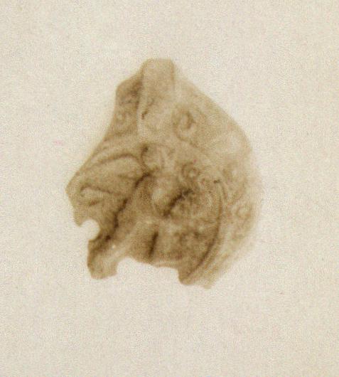 | Description: | Fragment of discus and rim. On rim, vine pattern. On discus, Eros, running right, carrying a goose. Thin purplish-black wash. Grayish-buff clay. Type XXVIII of Corinth collection. | |