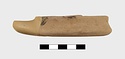 Inside, remains of metallic brown glaze; on outside, traces of glaze wash (?).