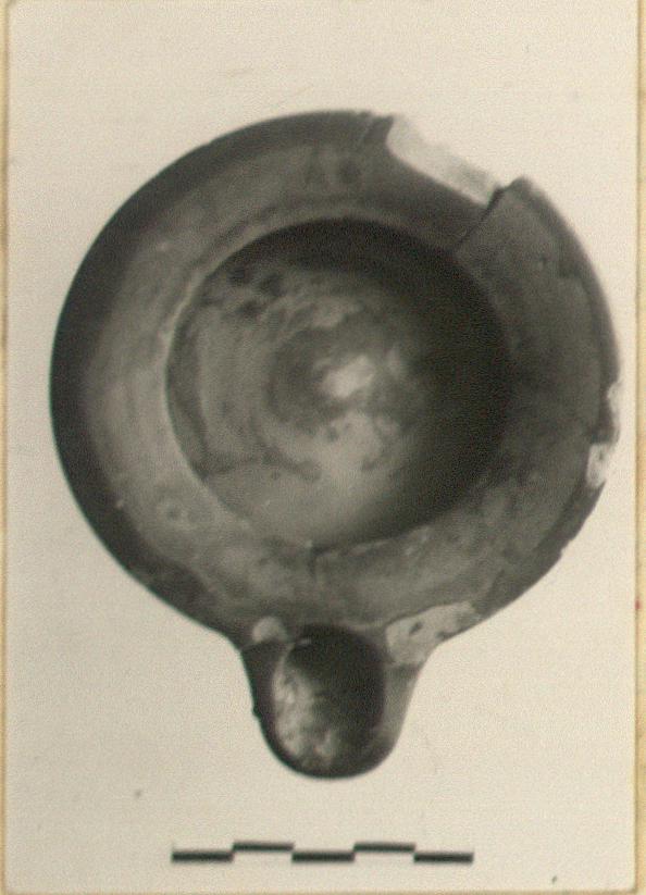 | Description: | Upper part preserved, except for chips; bottom missing. Glaze on rim grayed from stacking. Two pairs of scratches on the rim at the back are apparently intentional. Clay gray and stained; burned (?). Type II of Corinth collection, type 16B of Agora collection. | |