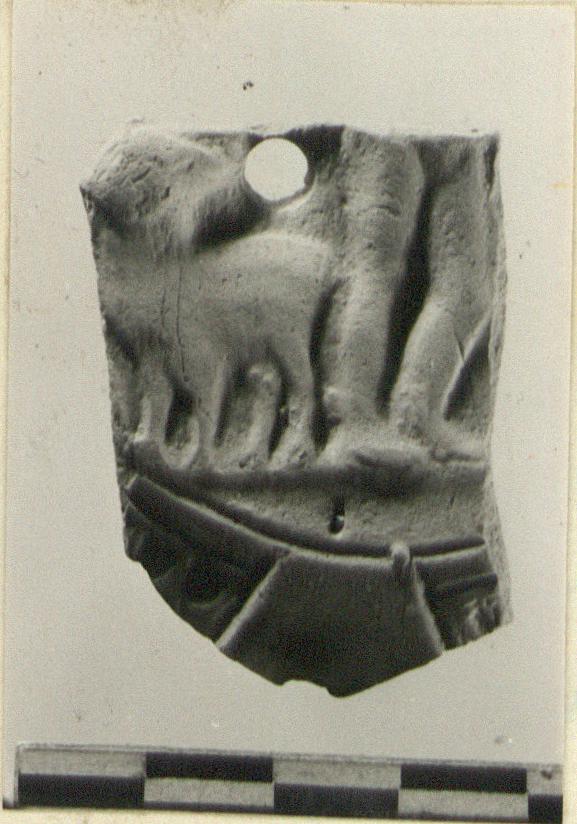 | Description: | Part of rim, nozzle and disk preserved. Disc gives Hermes' legs and a sheep. Slightly raised framing ring. Small ovolo on rim. Buff clay. Cf. Corinth IV, ii, fig. 47. Late 2nd.-early 3rd century. | |