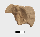 | Description: | Part of disk and rim preserved. Disc decorated with Artemis with bow and arrow, attended by her dog. Rim, sloping; plain, with panels flanked by stamped circles. Soft pink-buff clay. Late 2nd.-early 3rd. century. | |