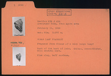 | Description: | Fragment from discus of a very large lamp (?). Part of the bust of Isis. Chiton, cross-banded, with central knot. Pink clay, buff surface. | |