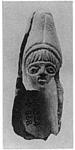 | Description: | Hole pierced crosswise near tip. Signed "K Y". Back of Telesphoros figurine or Attis bust. Joins with T 1361. Unglazed. Light red clay. | |