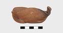 | Description: | Mended from two fragments; handle and part of left side missing. Rather deep bowl, trefoil-shaped, the sides flaring from a small flat resting surface, but bent inwards toward the front to form the nozzle. Heavy vertical handle, from bottom, to edge of bowl, broken away. Light red slip all over. Coarse red clay, gray at core. Handmade. Type 1 of Agora collection. | |