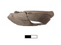 | Description: | Two non-joining fragments. Fragment a), preserving most of discus of lamp, showing two gladiators facing left and one facing right. Beneath them a latin inscription in two lines: "SABINVS POPILLIVS" Fragment b), part of (inscribed) base and wall . Cf. Corinth IV, ii, p. 82, no. 461. Loeschke (1919), Lampen aus Vindonissa, no.113, pl. XV. <graphic> ADDENDA: now joined. | |