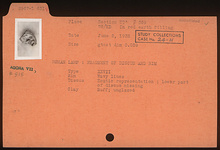 | Description: | Fragment of discus and rim. lower part of discus missing. On rim, wavy lines. On discus, erotic representation. Unglazed. Buff clay. Type XXVII of Corinth collection. | |