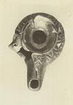 | Description: | Mended from many fragments; the vertical band handle, and small pieces from the body, missing. Small depressed top; double convex body, on the upper part of which is an egg and dart pattern in relief. On the nozzle, next the edge of the top, a five petalled rosette. Tapering nozzle, rounded at end; pointed, pierced knob on left side of body. Good metallic black glaze inside and out. Type XVIII of Corinth collection, type 46B of Agora collection. | |