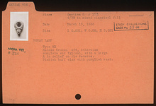 Description:   Handle broken off, otherwise complete and typical, with a large "A" in relief on the reverse.