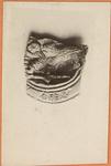 On the discus, a bear pursues a man who climbs desperatedly up a framework to the left.