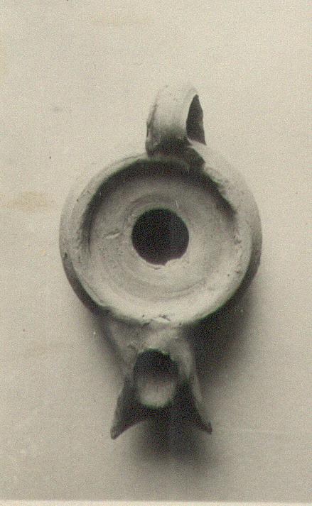 | Description: | Curved body with raised ridge around discus which is slightly sunken. Vertical ribbon handle. Foot slightly concave. Nozzle flaring at end. Buff slip. Red clay. Type XVI of Corinth collection, type 35D of Agora collection. 1st. century A.D. | |